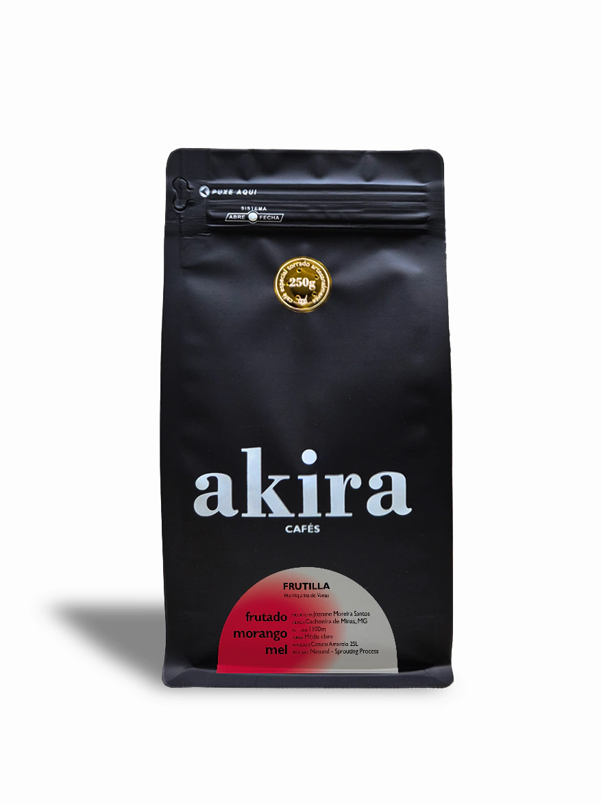 O Frutilla é um microlote produzido pela Jozeane Santos na fazenda Borá, em Cachoeira de Minas - MG. Lá nas montanhas da Mantiqueira, ela se especializou no Sprouting Process, um método de fermentação natural do café cereja. Ele ocorre dentro de bombonas num ambiente anaeróbico, onde as enzimas presentes na casca do café promovem a fermentação natural, criando camadas de sabor no café. Esse processo é 100% natural e não conta com adição de compostos para indução de fermentação.